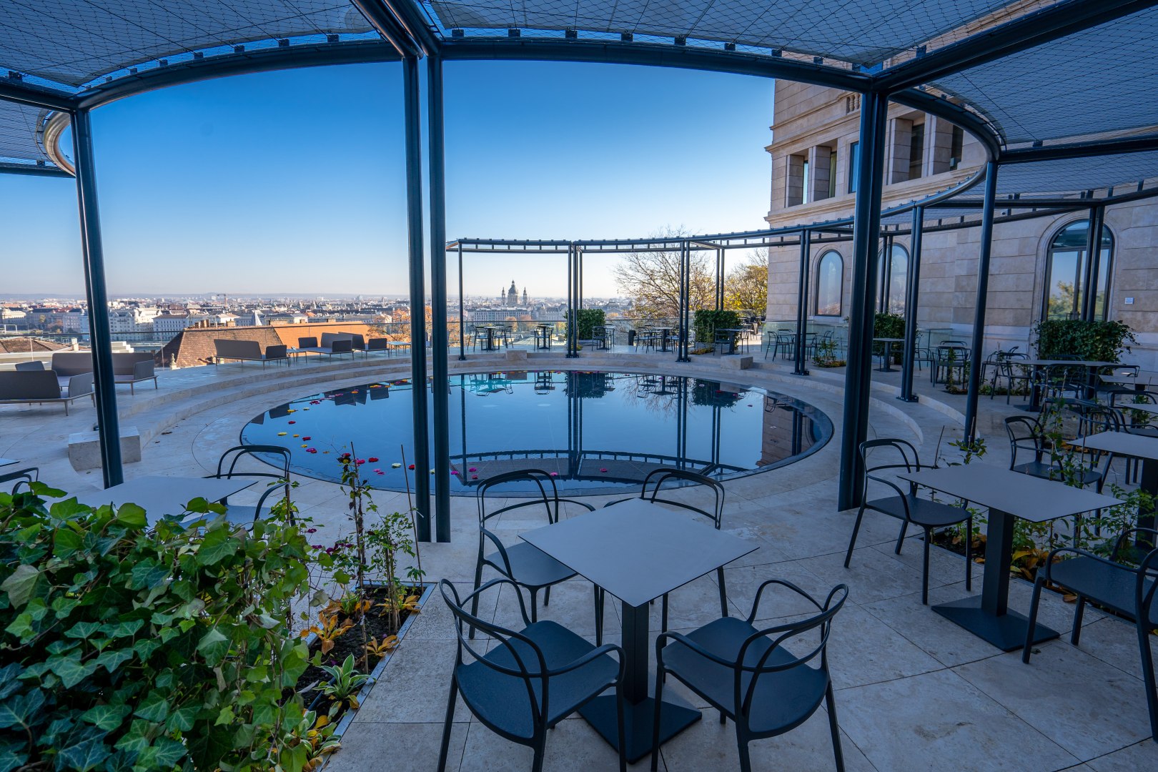The historic site of Aranybástya with its magnificent panorama offers an unforgettable experience. The restaurant’s interiors were designed by Rózsa Csavarga and Bence Szabolcs Török, and based on their ideas, Coninvest’s experts selected indoor chairs, tables, benches and bar stools, as well as outdoor armchairs and Italian Pedrali lounge sofas, where guests can enjoy the stunning view of the Parliament building.