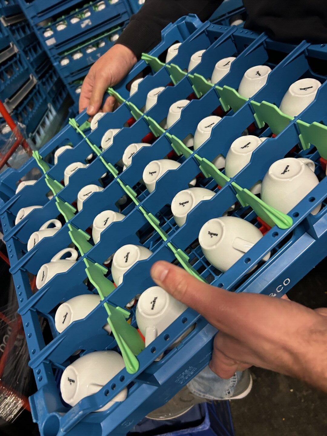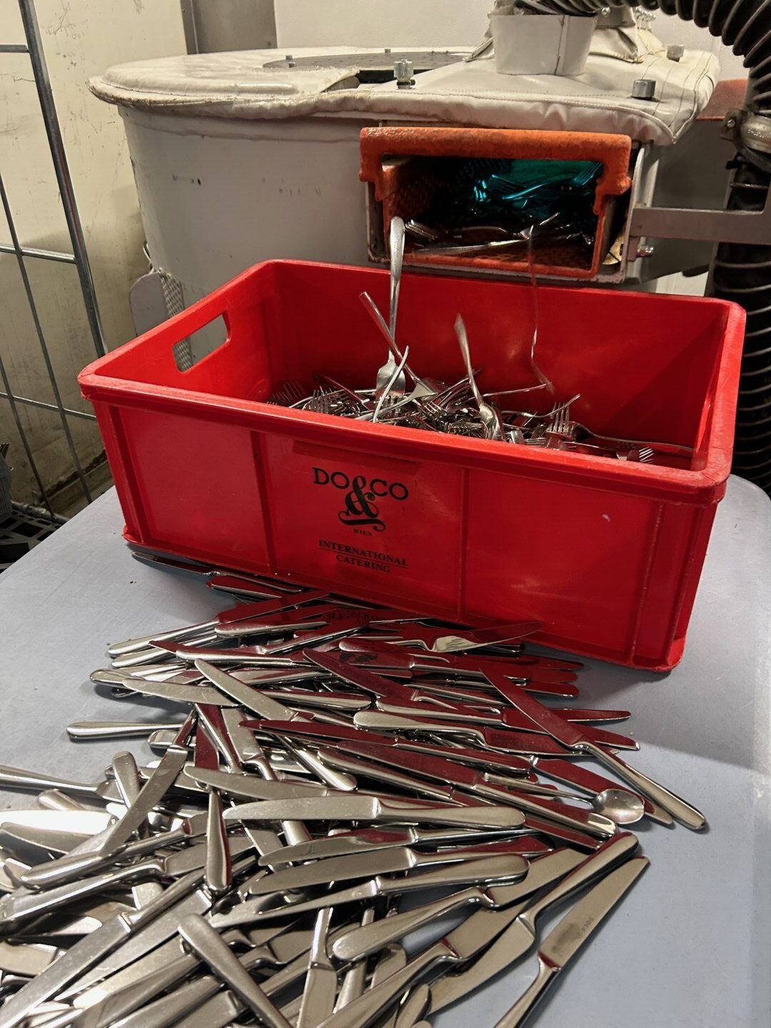 Washing dishes here is far more than just cleaning. The automated cutlery sorting system processes 5,500 pieces of cutlery per hour, not only separating knives, forks, and spoons, but also sorting them by product family. This is precision logistics, not a background process.