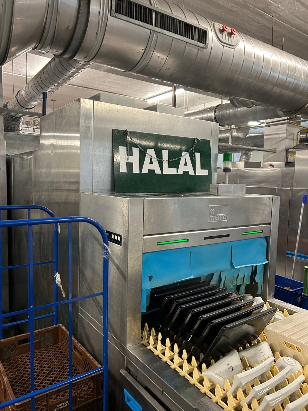 DO & CO handles approximately 80% of the traffic at Schwechat Airport. We were able to see the in-flight trolleys, tray systems, and complete logistics processes of Emirates, Delta, and Austrian Airlines up close. One of the dishwashers had a special “Halal” label: only utensils used in halal kitchens can be washed in it, with complete separation. This kind of consistency shows how seriously they take cultural and religious expectations.
